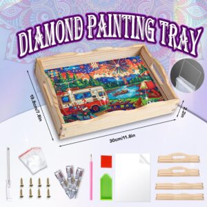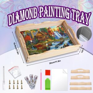 Diamond Art Kits for Wood Tray with handles includes PVC plate, diamonds, tools includ 1 x point dia...