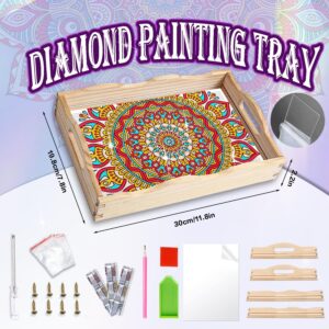 Diamond Art Kits for Adults Wooden Serving Trays with Handles, 5D Diamond Painting Big Gem Arts and Craft Gifts Trays Decor Gift Home Decor 7.8×11.8 Inches Mandala H