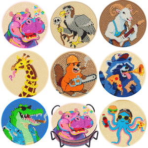 Animal Diamond Painting Coaster with Holder 5D Diamond Art Kits for Adults Round Full Drill Beginners Gem Dots Craft Arts Supplies Party Home Decor 8pcs