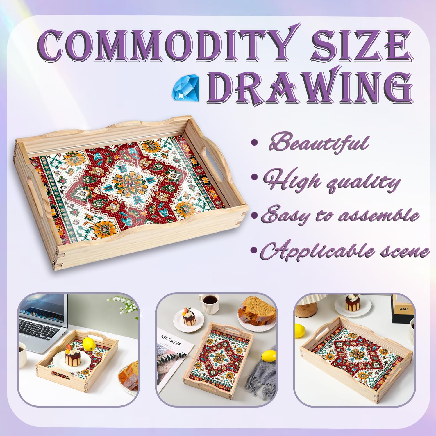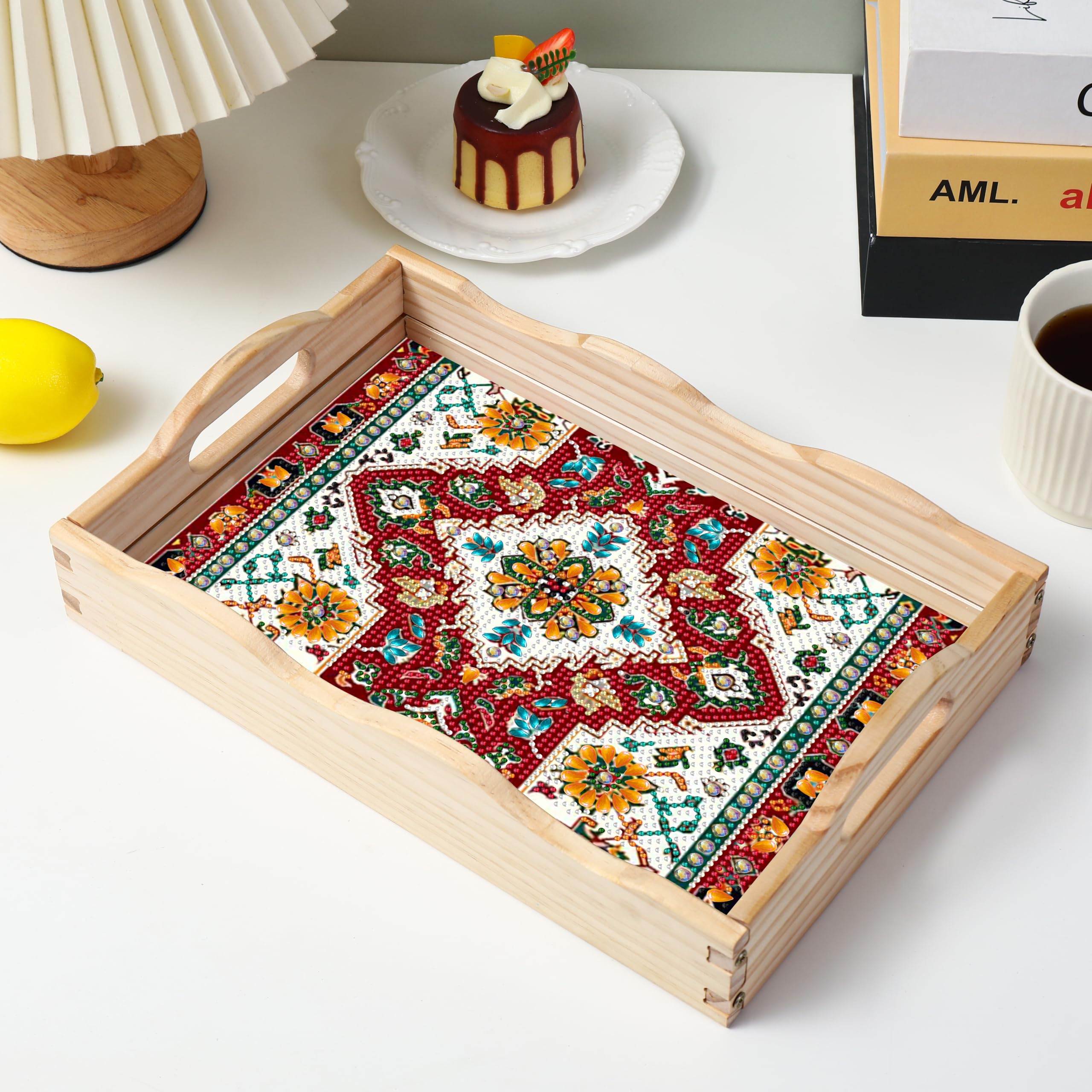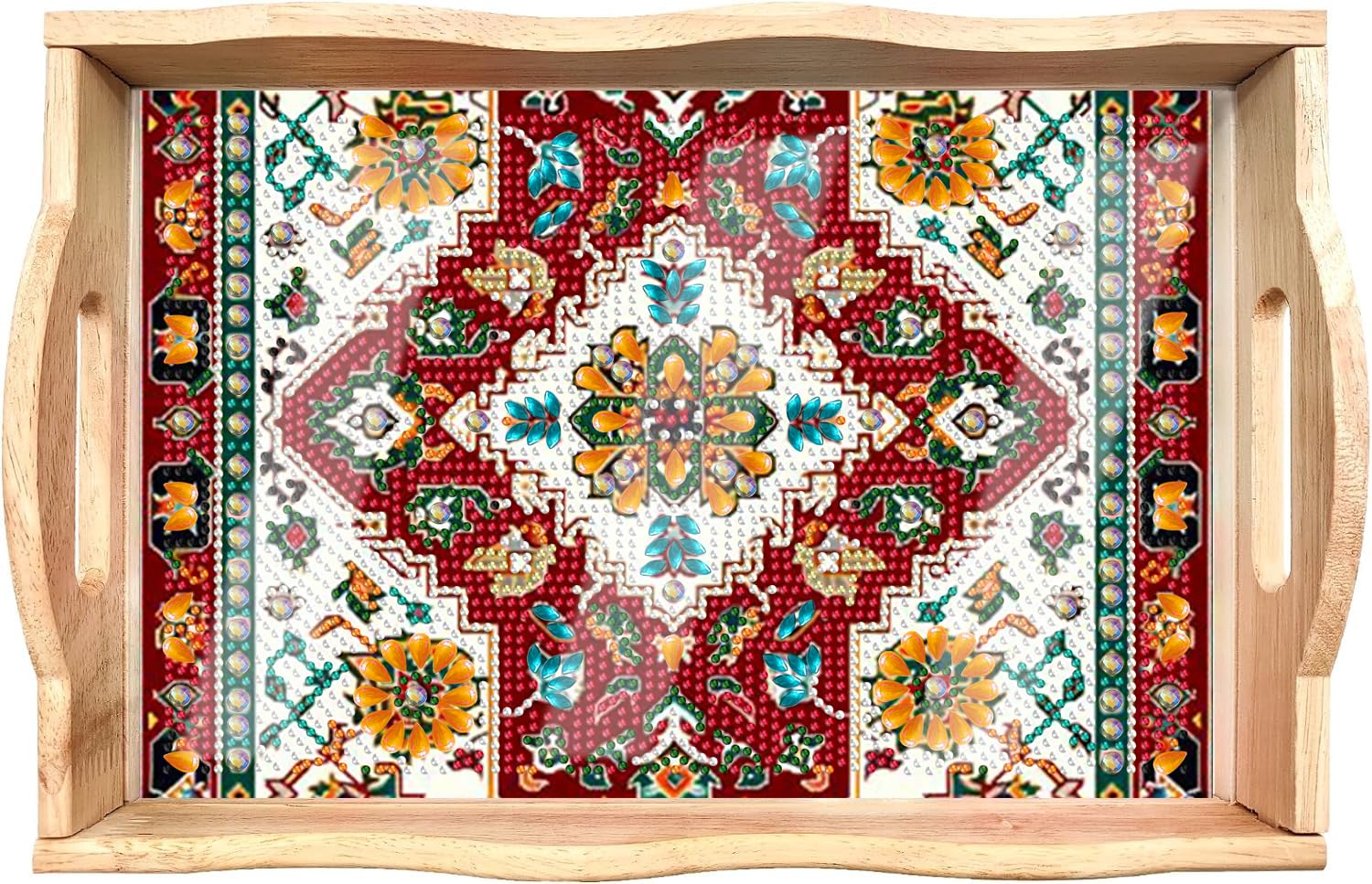 Diamond Art Kits for Adults Wooden Serving Trays with Handles, 5D Diamond Painting Big Gem Arts and Craft Gifts Trays Decor Gift Home Decor 12.2×16.1 Inches Bohemia B