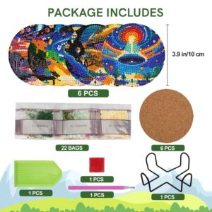 6 PCS Small Diamond Art Coasters Kits, Diamond Painting Coasters, Fall Diamond Art Kits for Adults Beginners, Arts and Crafts Item Sets with Holder for Drinks. Round Style