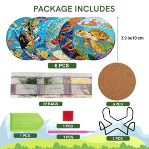 6 PCS Small Diamond Art Coasters Kits, Diamond Painting Coasters, Fall Diamond Art Kits for Adults Beginners, Arts and Crafts Item Sets with Holder for Drinks. Ocean