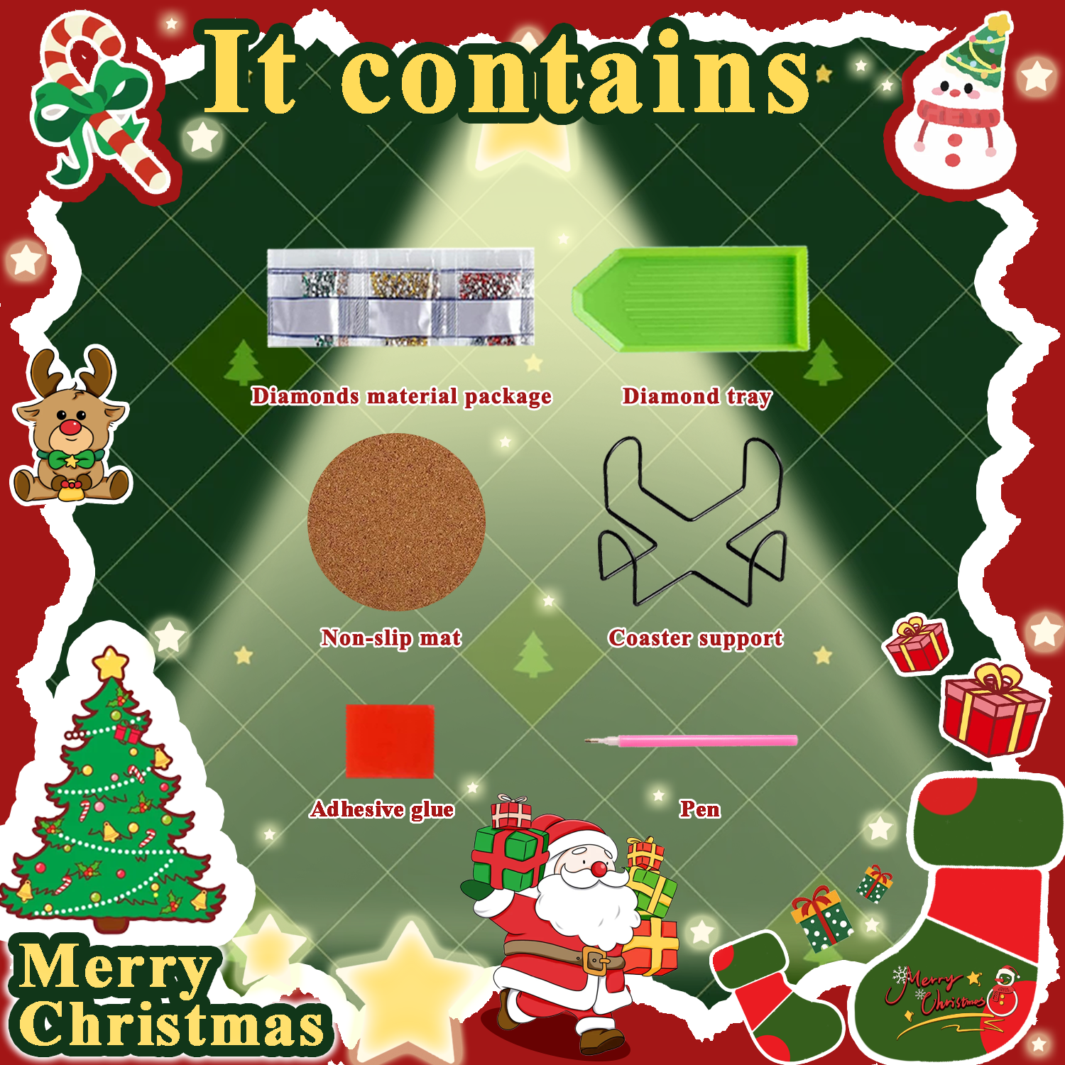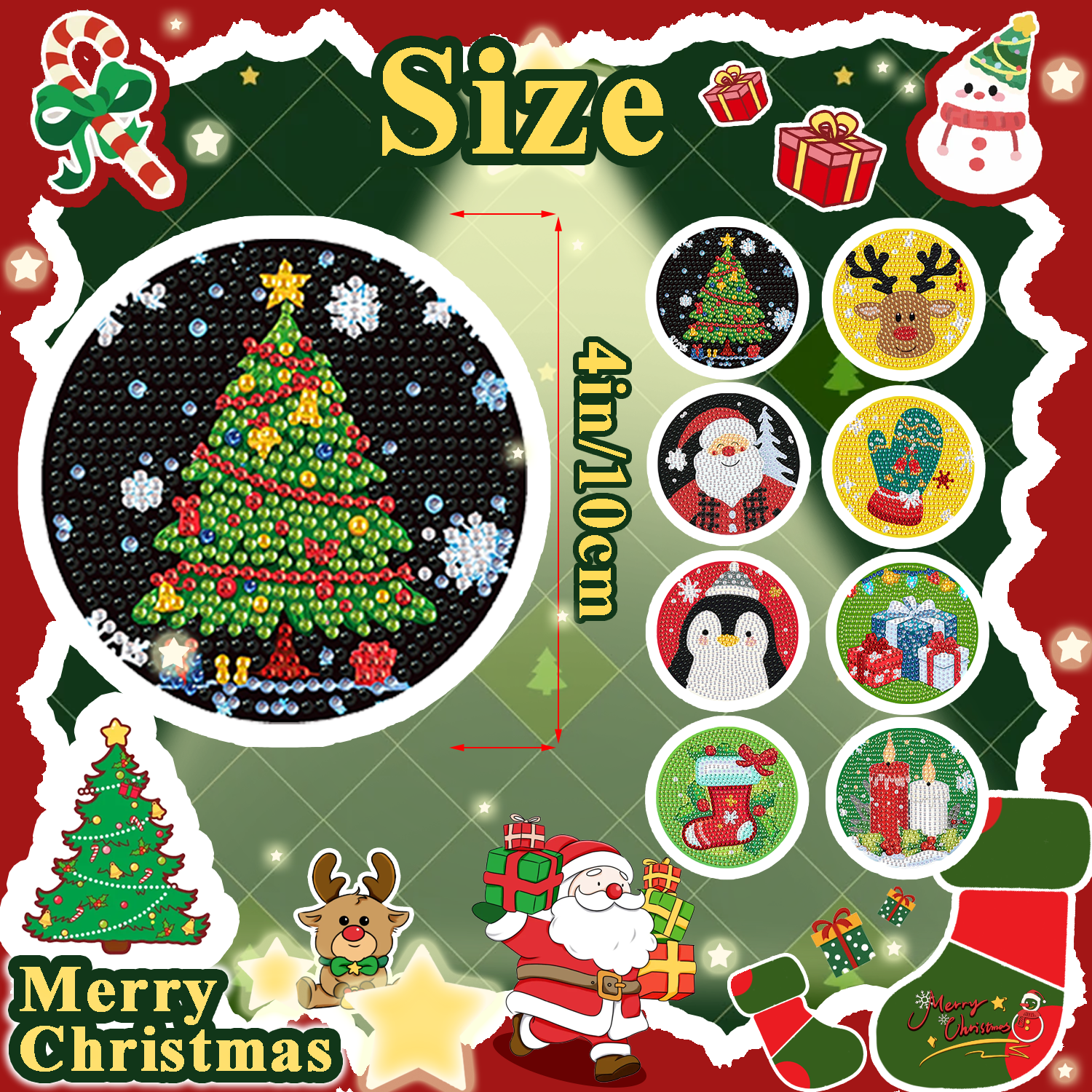 8PCS Christmas Diamond Art Coasters Kits Small Diamond Painting Kits for Adults Beginners Women Gem Art Coasters with Holder Funny Arts Supplies for Decor