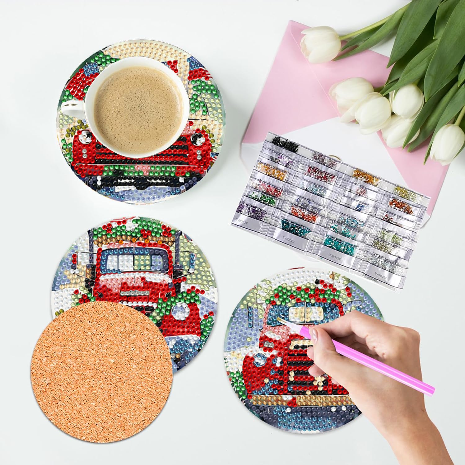 Jadilah yang pertama memberikan ulasan “Diamond Art Coasters Set of 6, Small Diamond Painting Kits for Adults Beginners Women, Gem Art Coasters with Holder, Funny Arts Supplies for Kitchen Decor Christmas Truck"