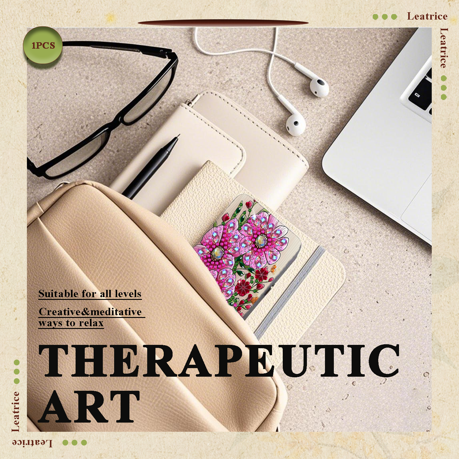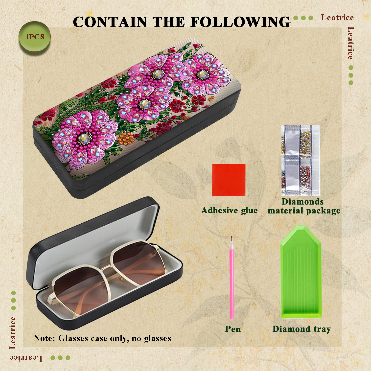 • Genuine DIAMOND DOTZSO® – permata resin khas kami yang berpotongan cemerlang, disortir berdasarkan warna agar proses pengerjaan lebih halus dan cepat.