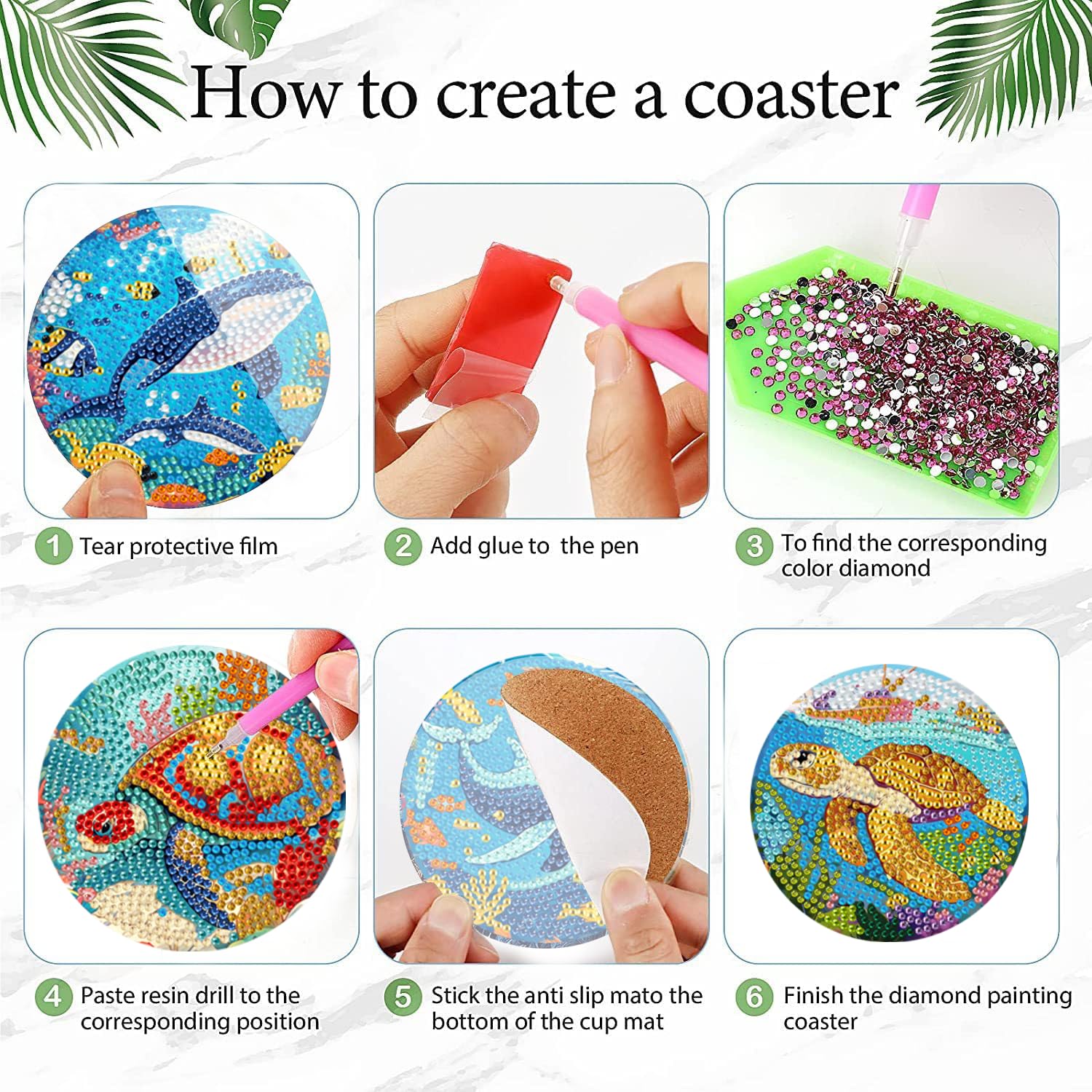 8 PCS Small Diamond Art Coasters Kits, Diamond Painting Coasters, Fall Diamond Art Kits for Adults Beginners, Arts and Crafts Item Sets with Holder for Drinks Ocean Style