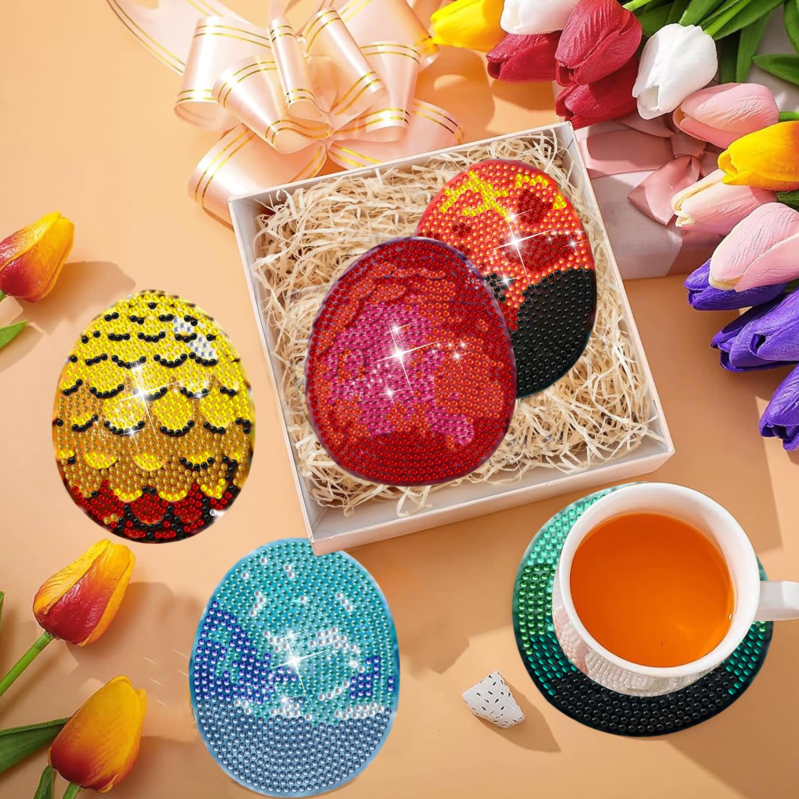 Napisz pierwszą opinię o „8 Pieces Diamond Painting Coasters with Holder – Dinosaur Egg Diamond Art Coasters with Cork Base for Beginners Adults & Craft Supplies Party Gift”