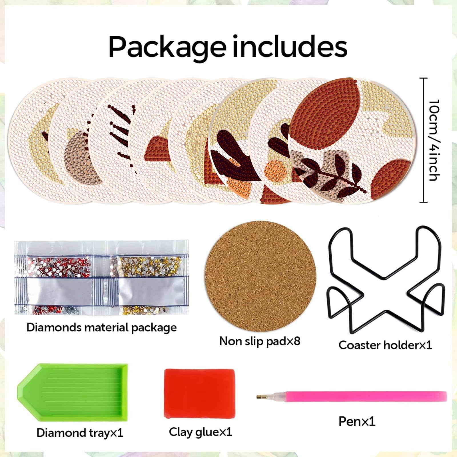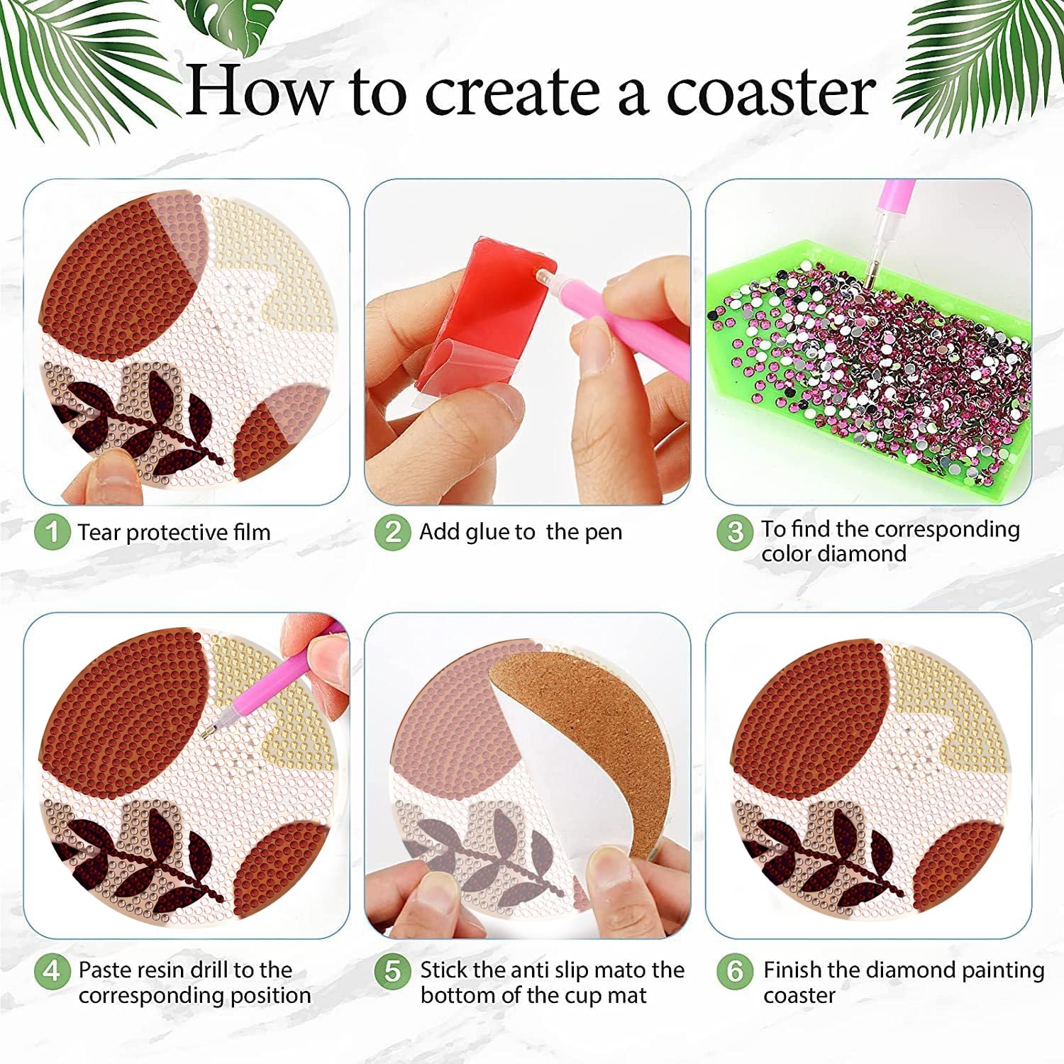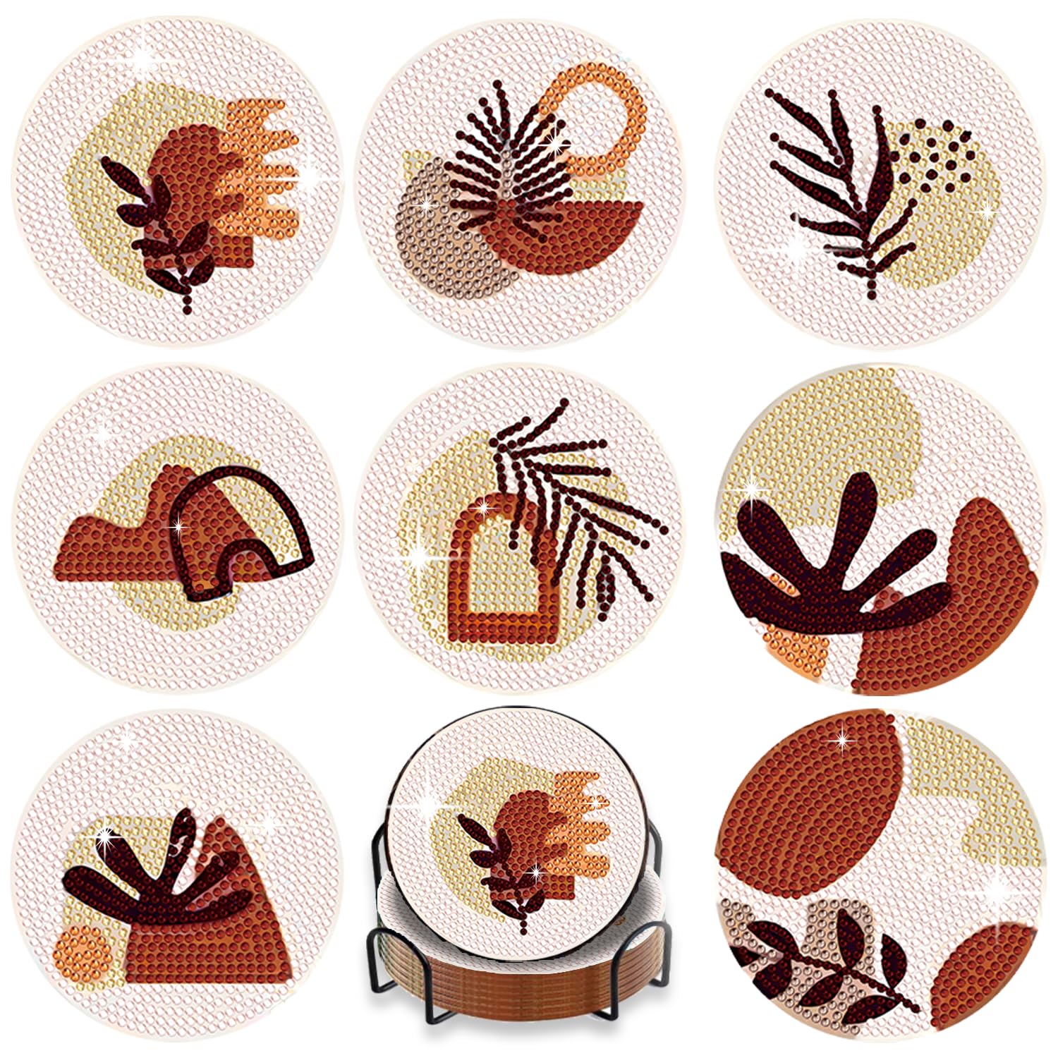 8PCS Flower Diamond Art Coasters Small Diamond Painting Kits for Adults Beginners Women Gem Art Cork Coasters with Holder Funny DIY Crafts for Home Decor