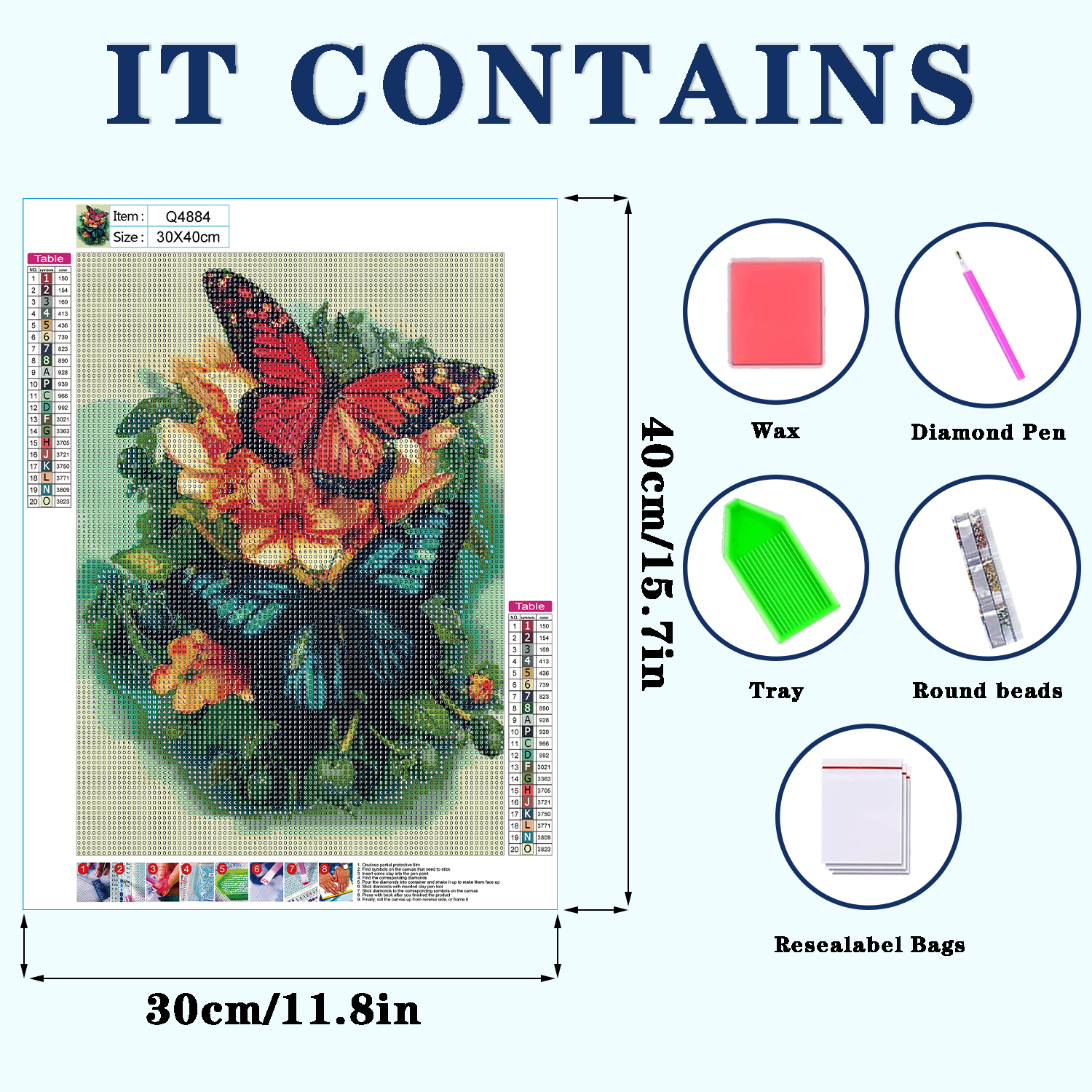 Butterfly Style Diamond Painting Kits for Adults Full Round Drill for Adults Beginner DIY Craft Gifts Home Wall Decoration 11.8×15.7 Inches