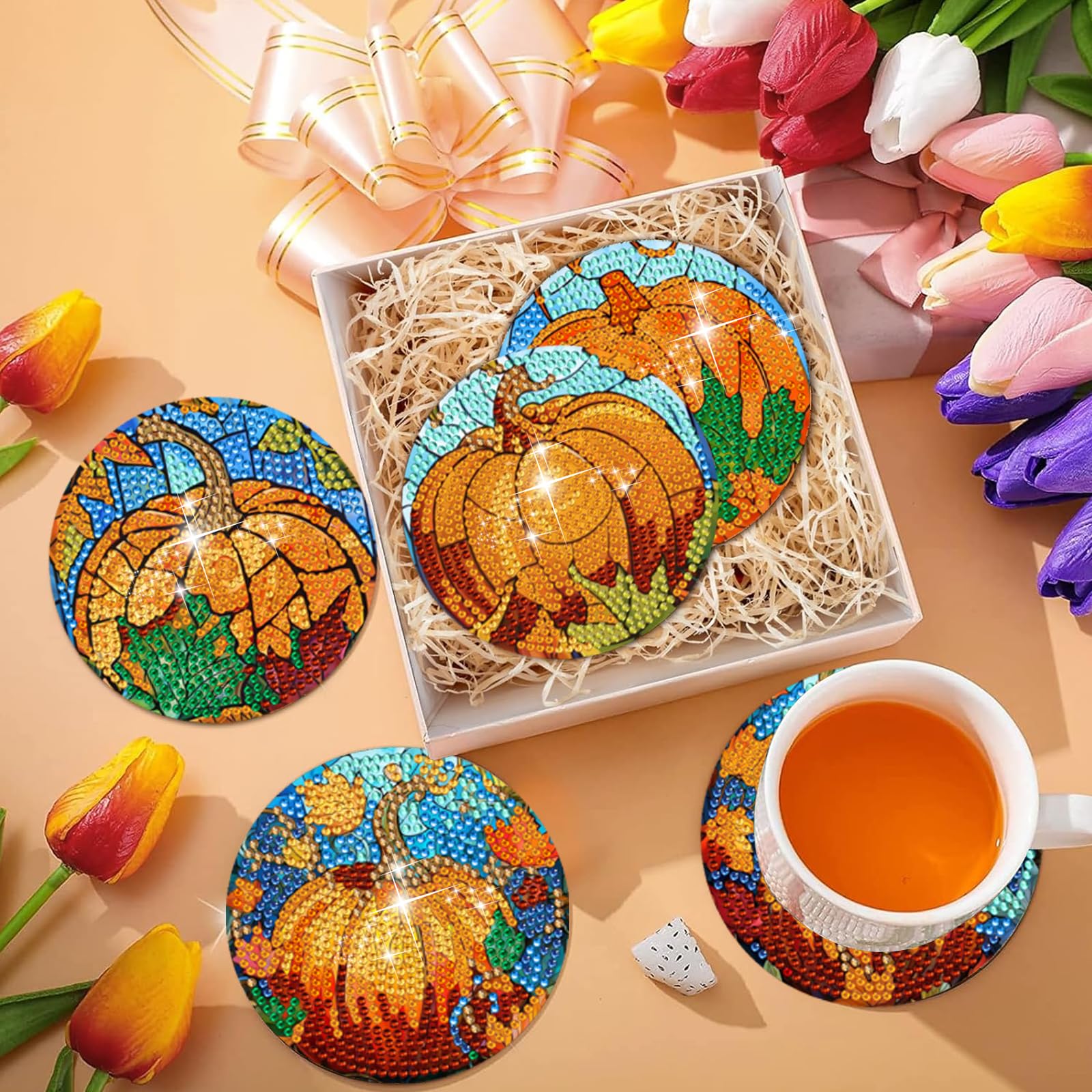 Seja o primeiro a avaliar “8 Pcs Pumpkin Diamond Art Coasters with Holder Diamond Painting Coasters for Beginners Adults Beginners for Birthday Gifts Craft Supplies"