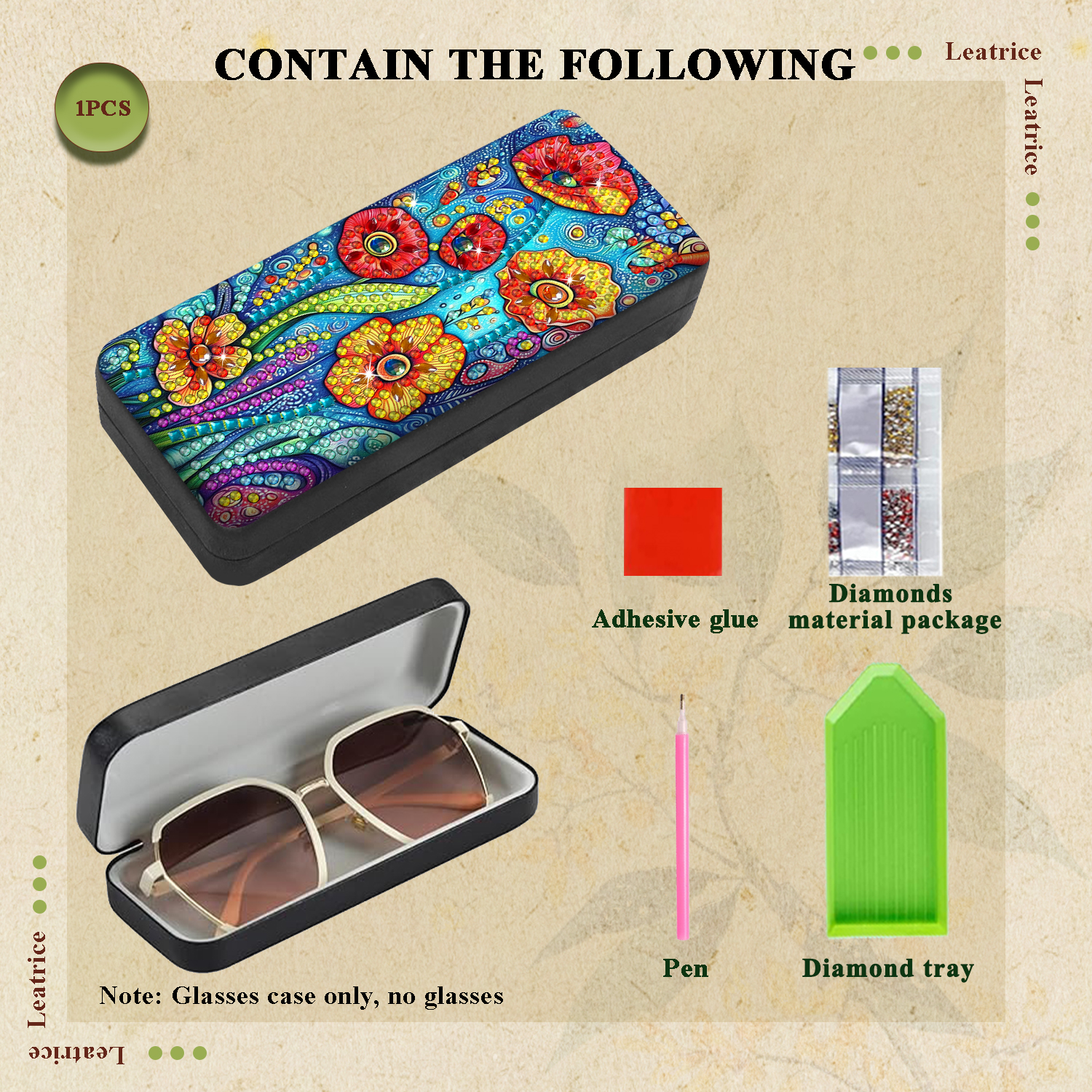 Flower Diamond Art Eyeglasses Case Kits for Adults Small Gem Art Paint by Diamonds Dots DIY for Beginner Women Suitable for Storing and Protecting Glasses