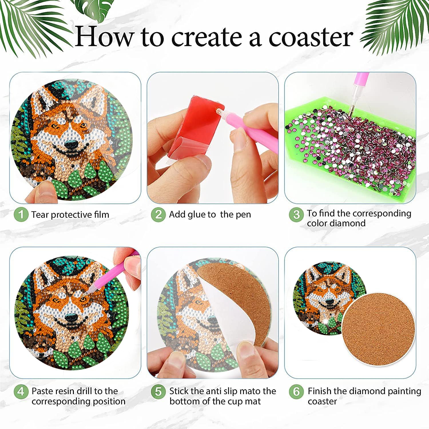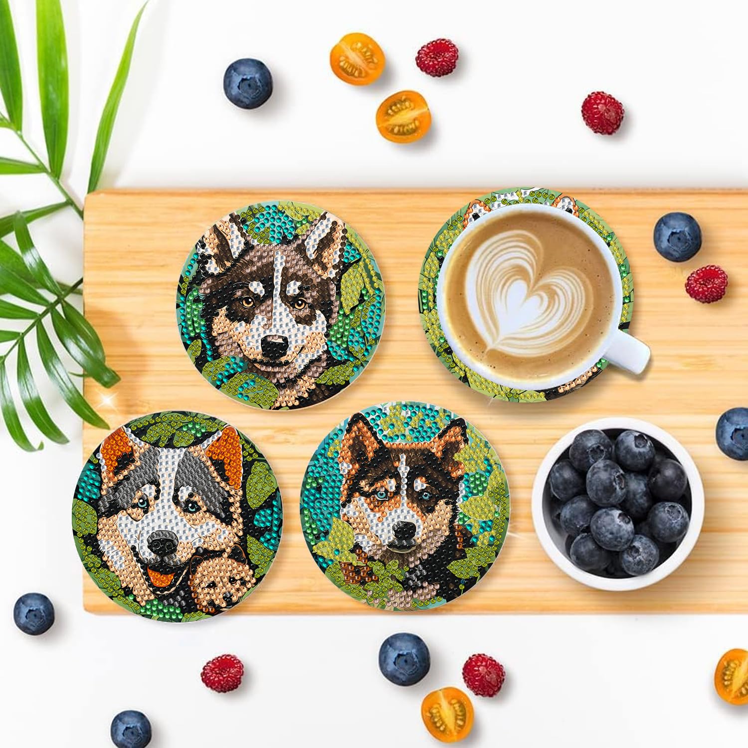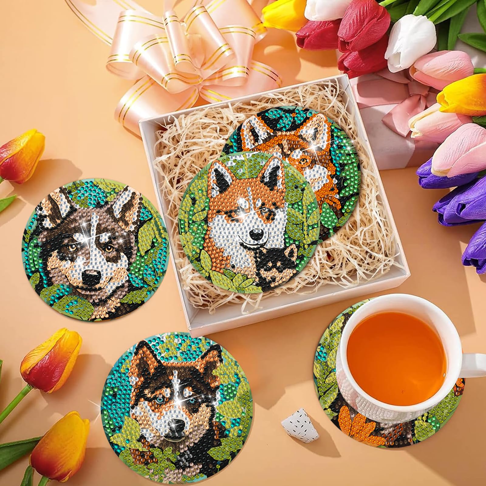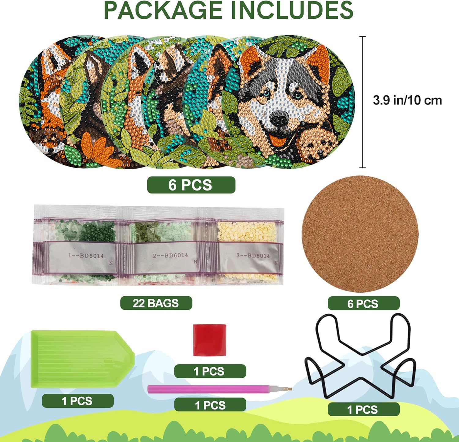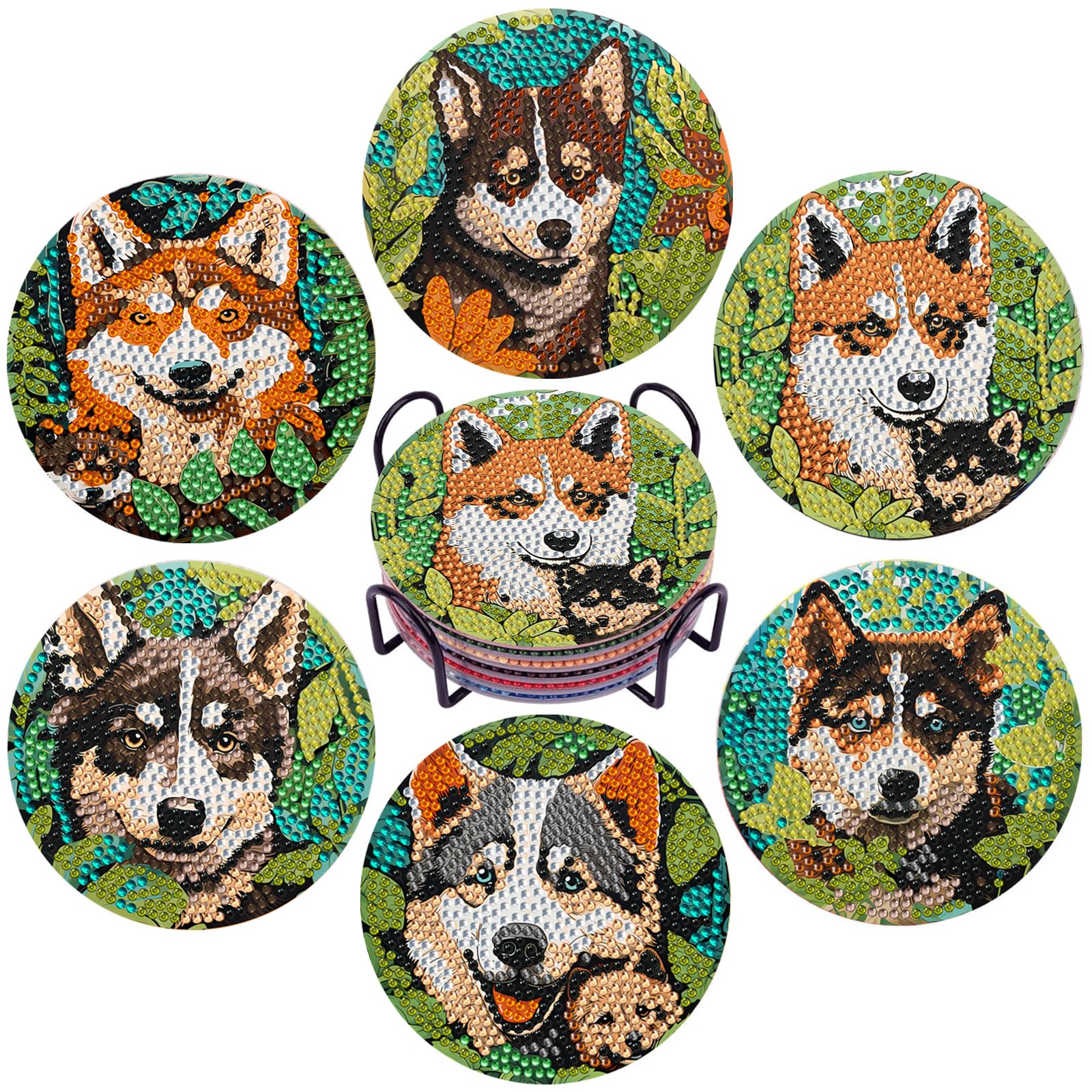 6 PCS Diamond Painting Art Coasters Set with Holder – Small Diamond Painting Coasters Kit for Beginners and Adults Dog