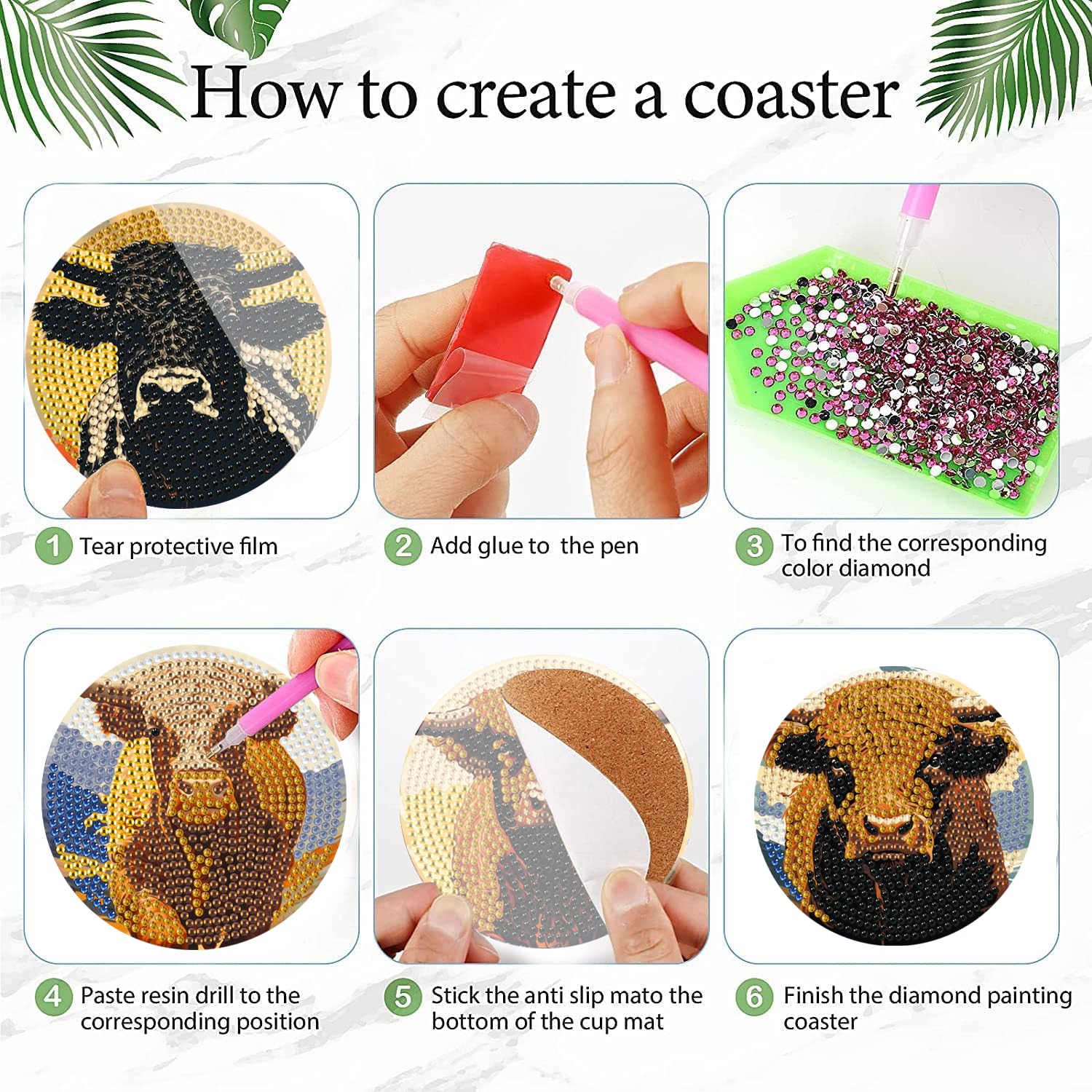 Seja o primeiro a avaliar “6PCS Cow Diamond Art Coasters, Small Diamond Painting Kits for Adults Beginners Women, Gem Art Coasters with Holder, Funny Arts Supplies for Home Decor"
